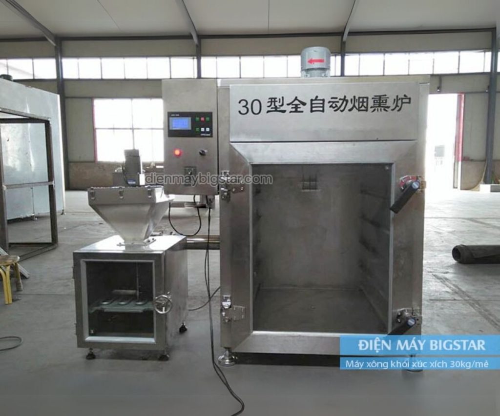 Ưu điểm của tủ xông khói là tạo ra hương khói tự nhiên, giúp xúc xích chín đều từ trong ra ngoài và có màu vàng óng bắt mắt. Thiết kế này không chỉ nâng tính thẩm mỹ mà còn góp phần kéo dài thời gian bảo quản, tạo ra dòng xúc xích xông khói cao cấp.