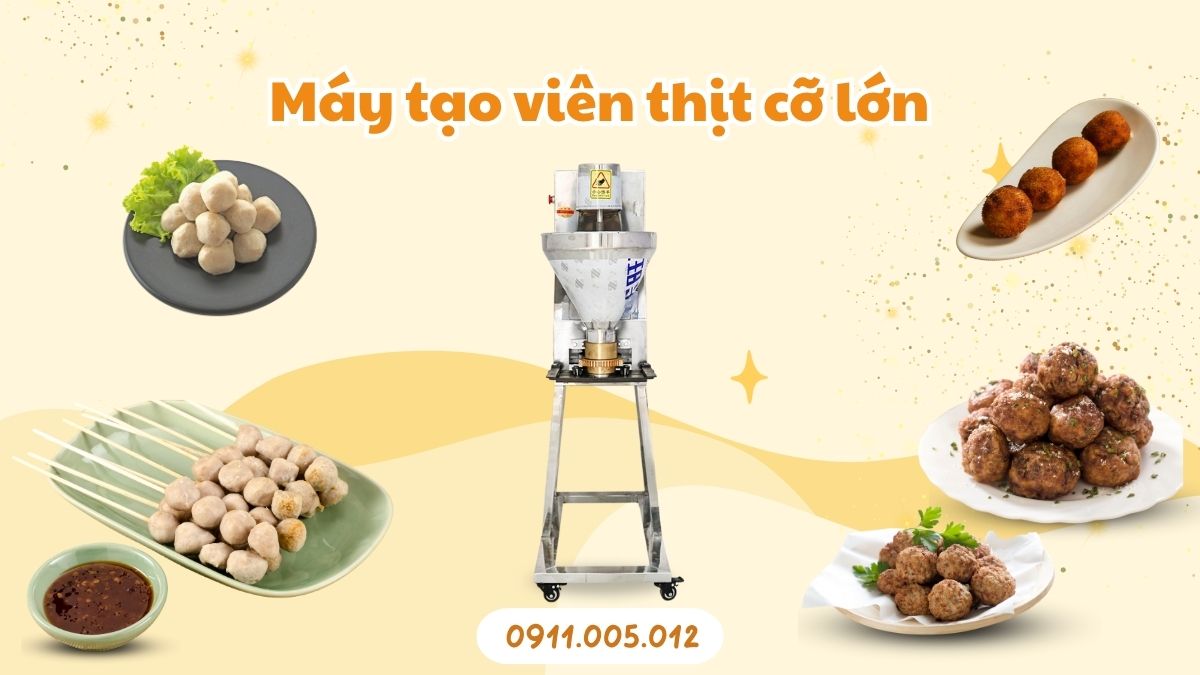 Máy tạo viên thịt cỡ lớn chuyên dùng để tạo các viên thịt tròn đều với số lượng lớn từ thịt xay. Loại thiết bị này có vai trò quan trọng trong việc nâng cao tốc độ sản xuất và chất lượng viên thịt làm ra.