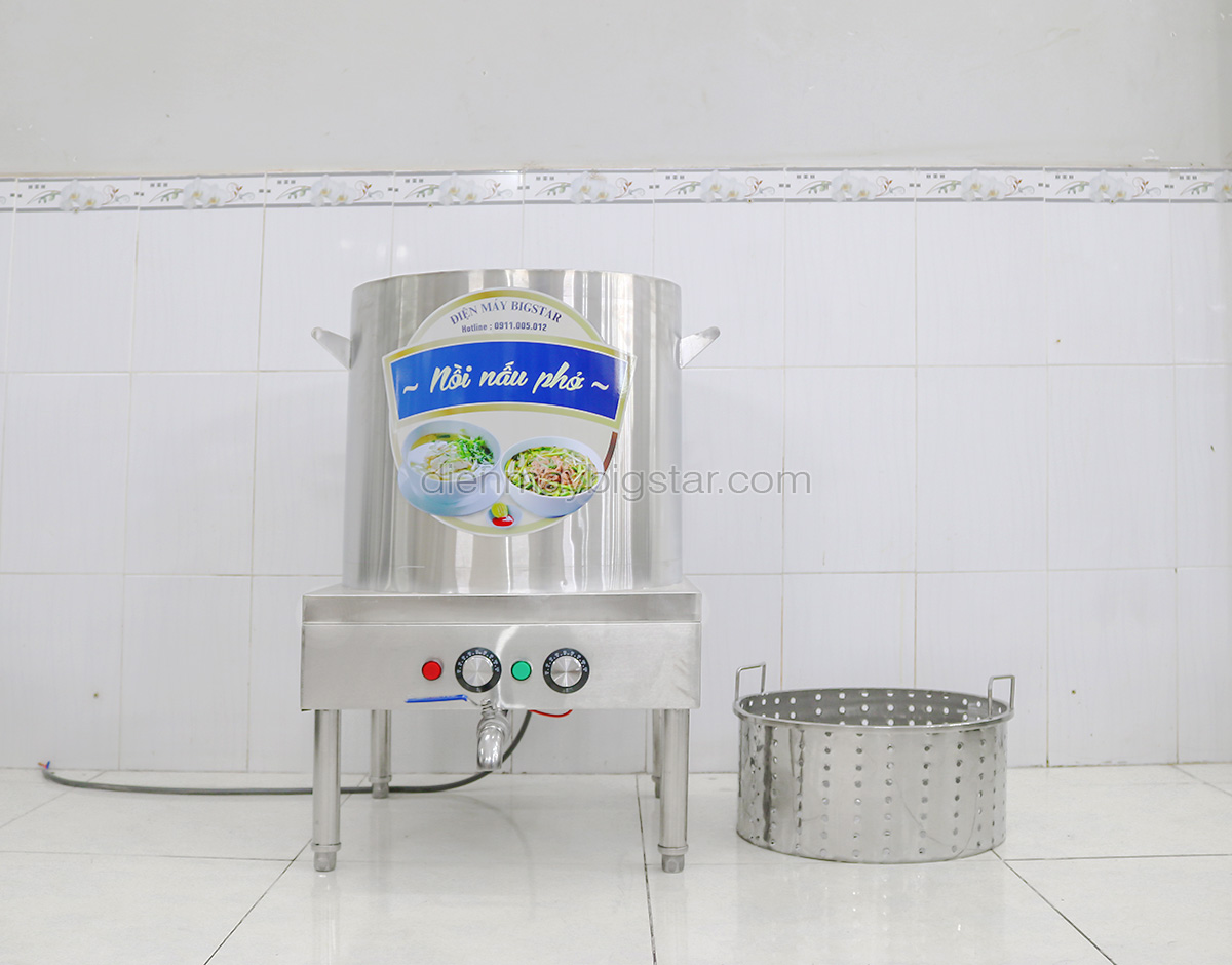 Nồi nấu phở 50 lít dùng điện thuộc dòng nồi hầm xương, nấu nước lèo thế hệ mới được sử dụng tại các quán bún phở bình dân với năng suất phục vụ khoảng 135 – 140 bát phở/ lượt. Sử dụng thiết bị này sẽ giúp công đoạn đun nấu của bạn diễn ra tự động, đơn giản, nhanh chóng, không khói bụi, an toàn, sạch sẽ, nâng cao tính chuyên nghiệp cho cơ sở kinh doanh. Nồi điện nấu phở được Điện máy BigStar trực tiếp gia công sản xuất với cam kết chất lượng cao cùng mức giá tại xưởng, tốt nhất thị trường.